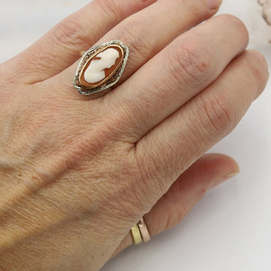 Victorian 10k Gold Shell Cameo Ring with Cannetille Detailing