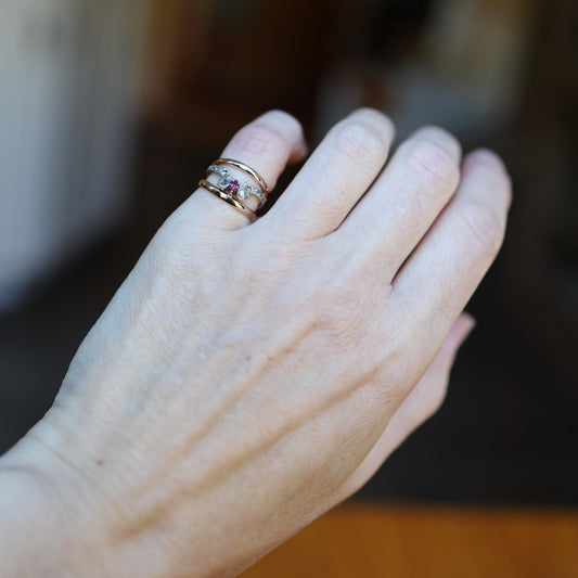Victorian 14k Gold Diamond and Ruby Pinky Ring