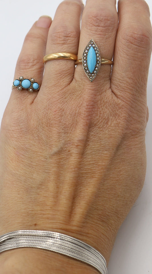 Victorian Turquoise and Pearl Navette Ring