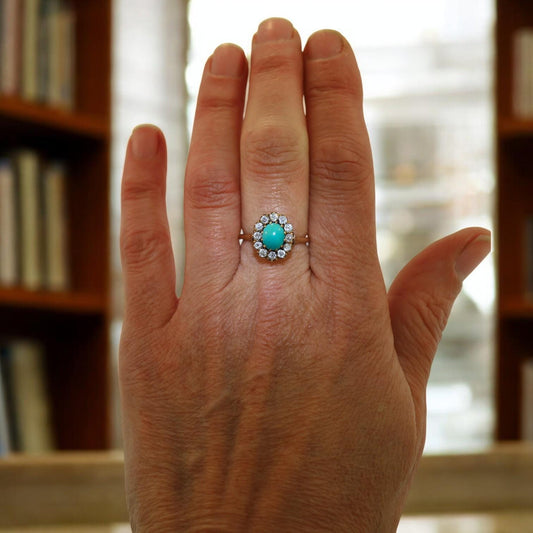 Victorian Turquoise and Diamond Halo Cocktail Ring