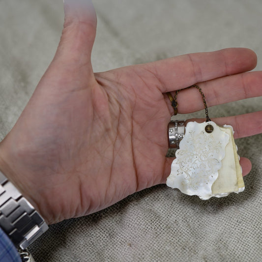 Victorian Mother of Pearl Notepad with Brass Chain