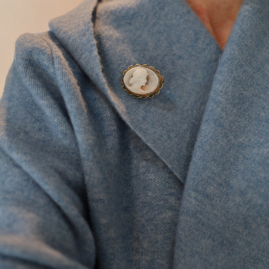Victorian Gold Filled Shell Cameo Brooch Pendant with Nautical Scene