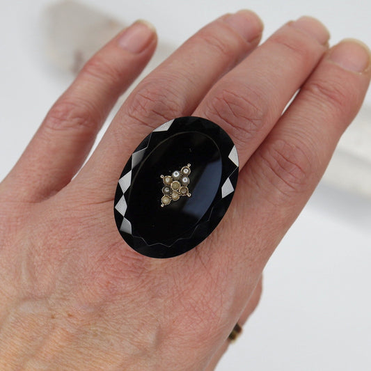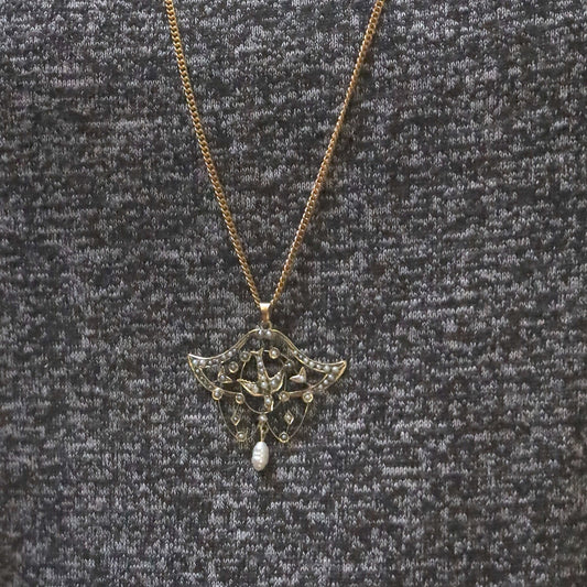 Large 14k Gold Victorian Lavalier Pearl Pendant with Bird
