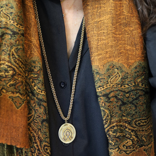 Large Victorian Niello Crescent Moon and Swallow Pendant