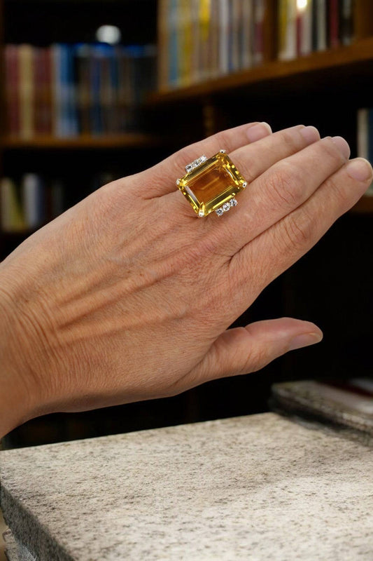 Retro Diamond & Citrine Statement Ring