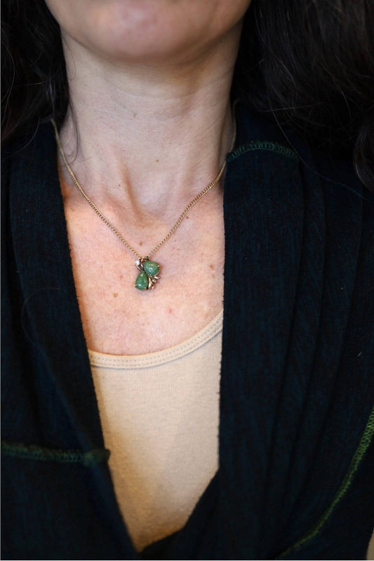 Retro Jade and Diamond Ribbon Pendant