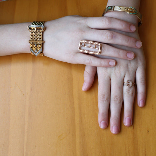 Retro 18k Gold Diamond Buckle Bracelet – Vintage Statement Heirloom | Petra Star