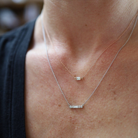 Recycled Baguette Diamond Necklace in 14k Rose Gold Minimalist Style