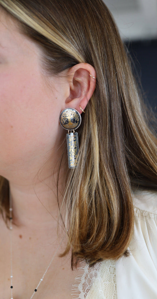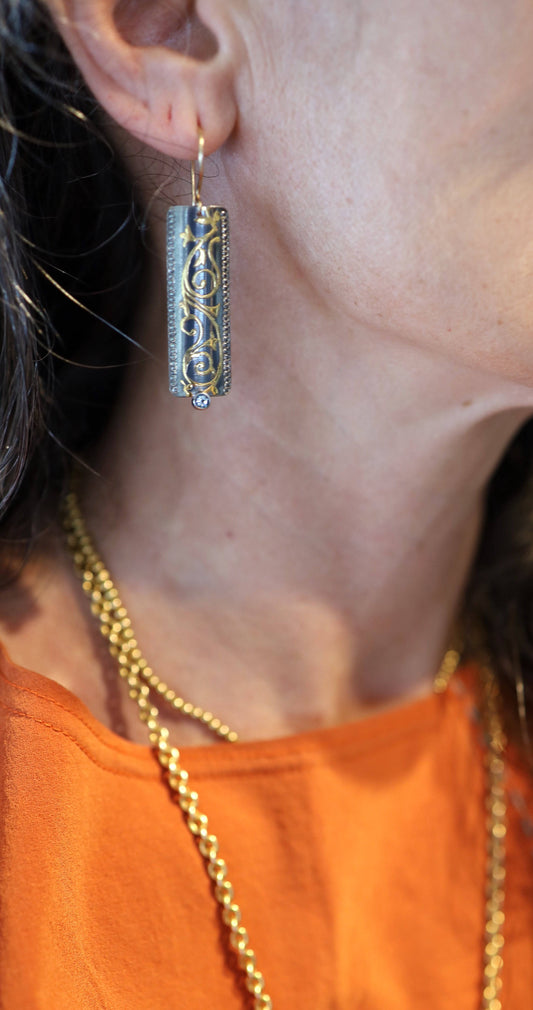 Keum-boo begins by depleting the surface of sterling silver to reveal a thin layer of fine silver. Then, with heat and pressure, 24-carat gold foil is carefully bonded to the silver, creating a permanent diffusion bond. This technique, rooted in centuries of tradition, results in stunning pieces of jewelry with a timeless allure.