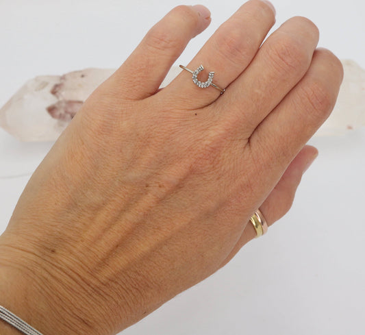 Vintage Diamond Horseshoe Ring in 14k White Gold