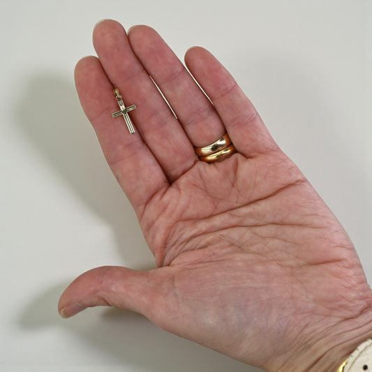 14k Yellow Gold Vintage Mini Cross Pendant with Heart Detail