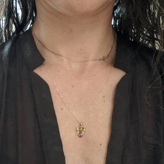 Antique Art Nouveau Pink Sapphire & Enamel Pendant