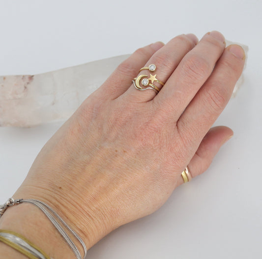 Crescent Moon and Diamond Ring in 18k Yellow Gold 0.18 cts H/I SI1 - JL290D