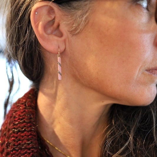 Art Nouveau Pink Enamel & Pearl Earrings in 14k Rose Gold / DK633