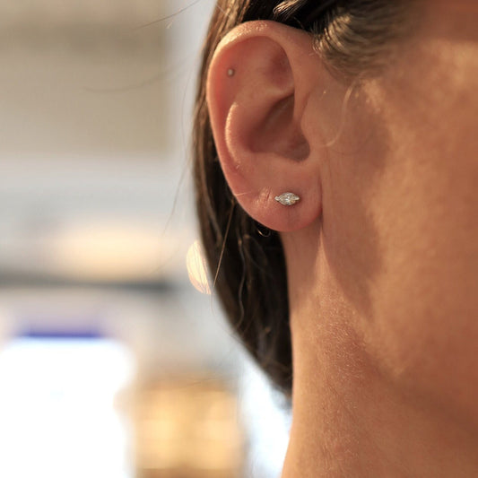 Diamond Studs set with Marquise Cut Diamonds in 14k White Gold