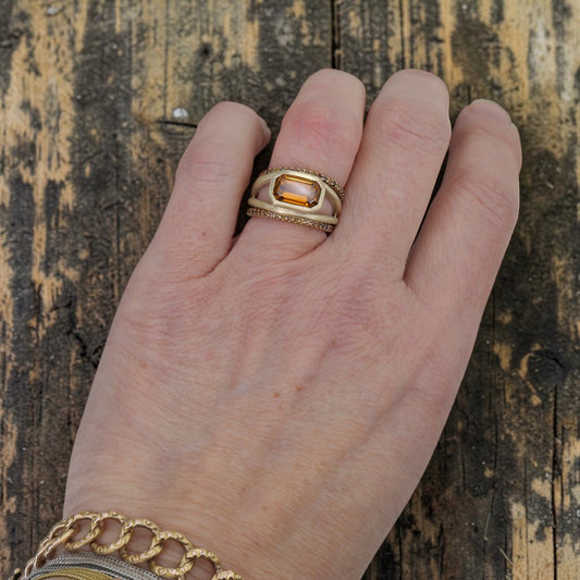 Ethically Mined Emerald Cut Orange Tourmaline Ring in 14k Yellow Gold