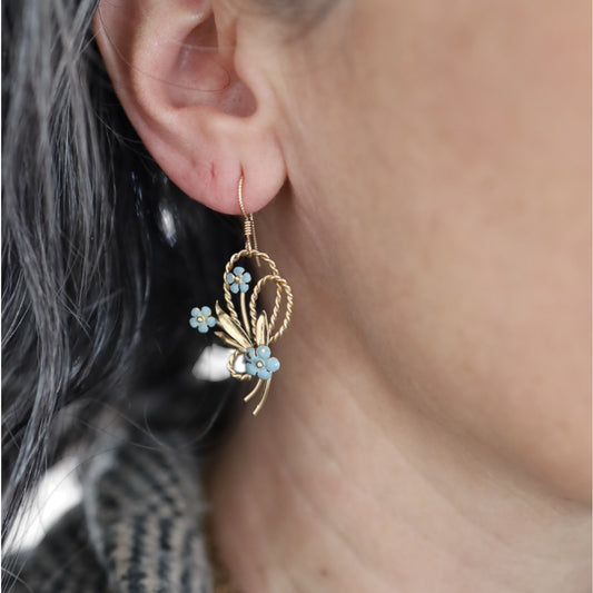 Vintage Forget Me Not Earrings in 14k Gold