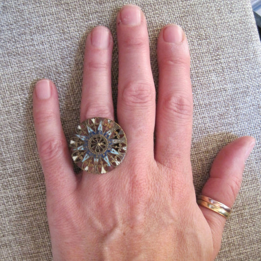 Vintage Enamel Ring with 14k Yellow Gold Band and Base Metal Top