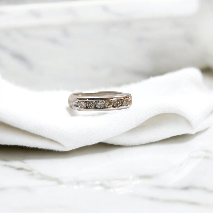 Vintage 1990s 14k Yellow Gold Half-Diamond Band
