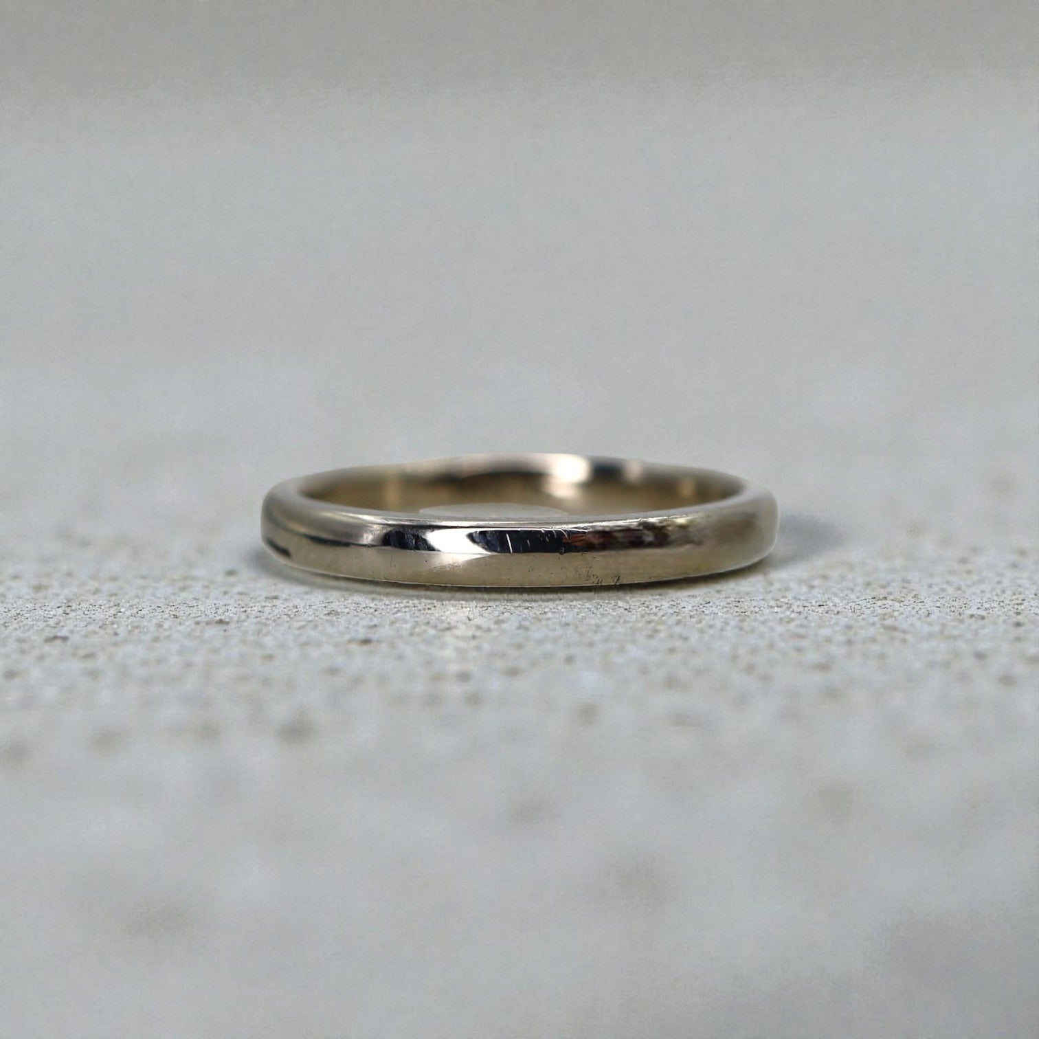 Crafted from 14k white gold, save on this vintage band features a low dome profile.