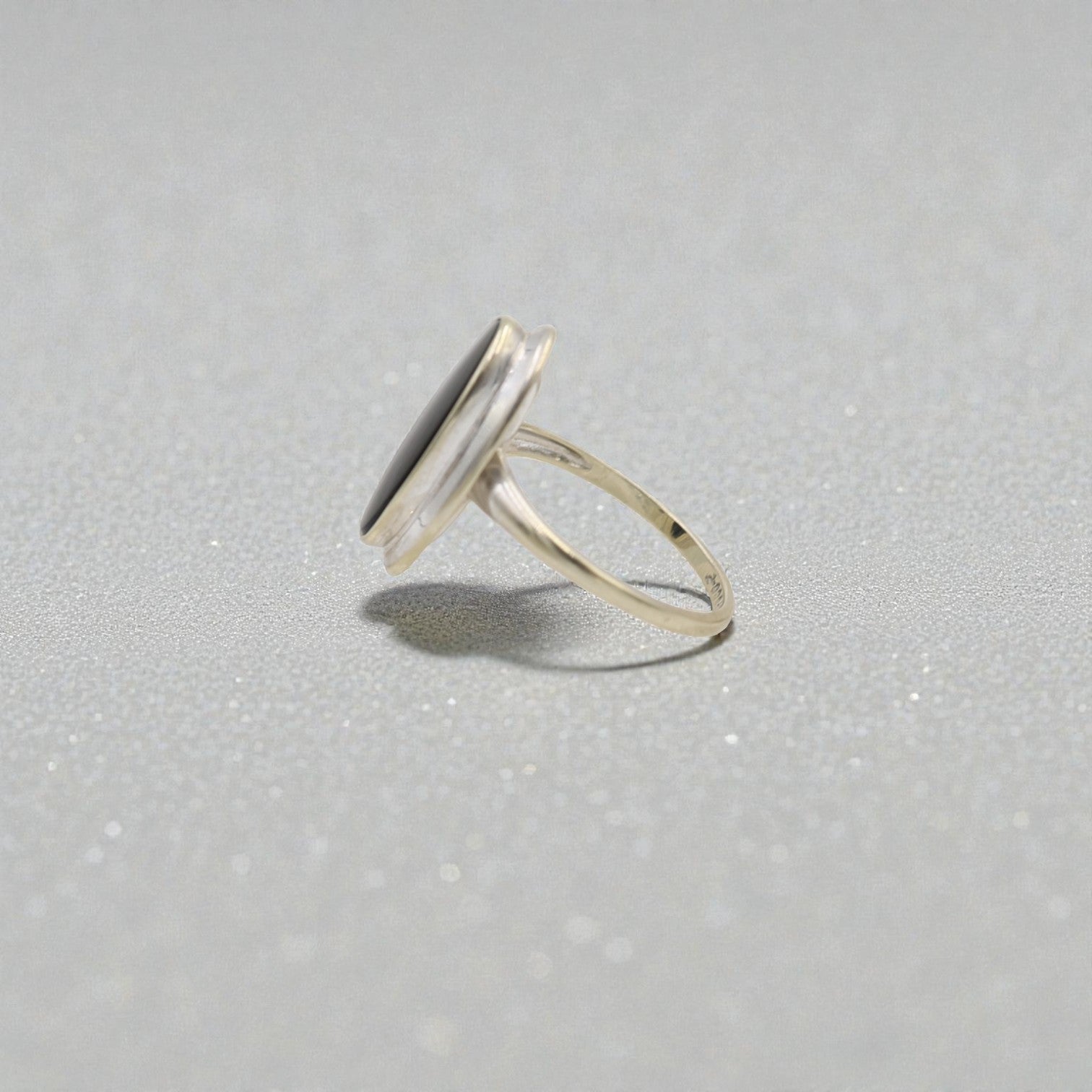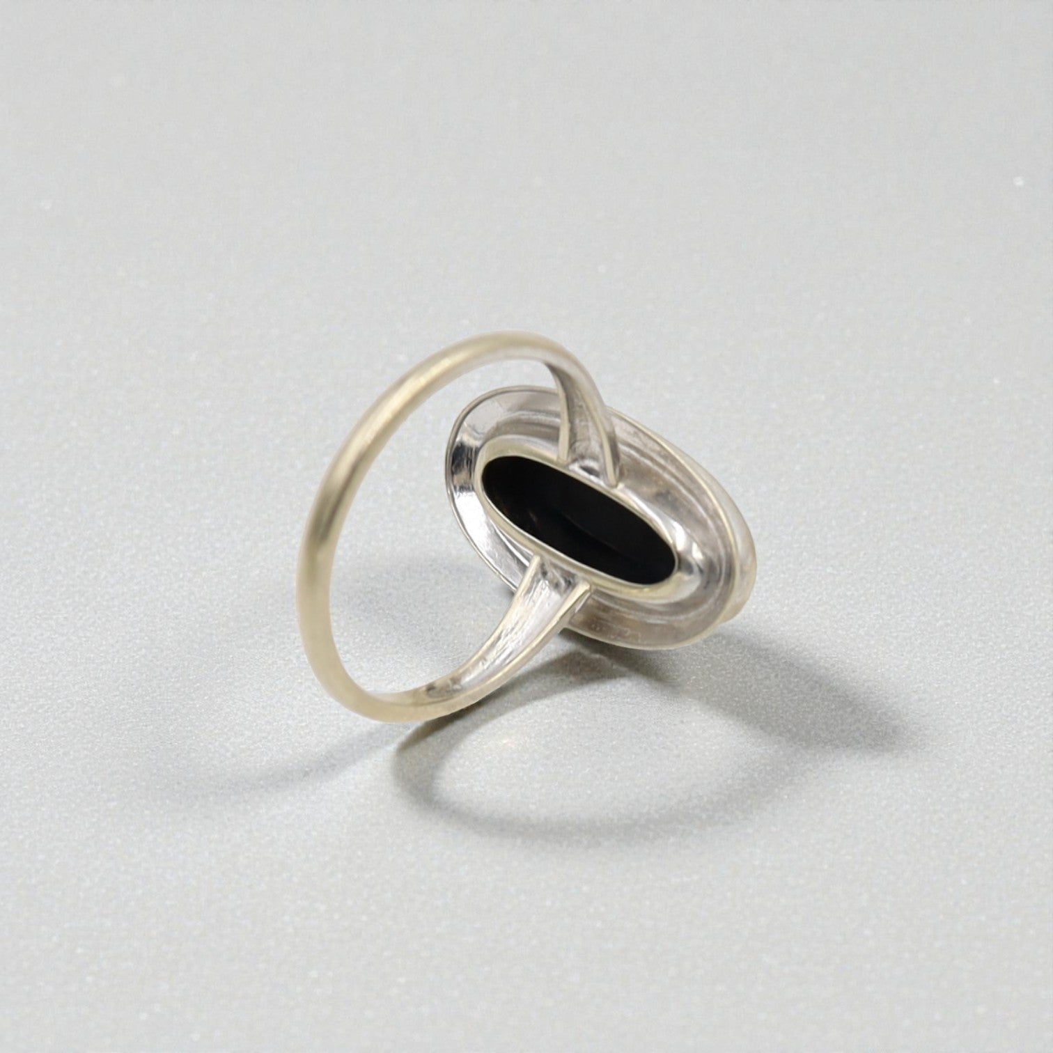 Stone: 16.0 x 8 mm Black Onyx (stone has very light, difficult to see surface scratches, rhodium plating on mounting has worn off in some areas)