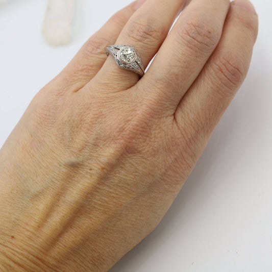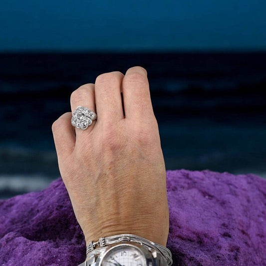 Platinum & Upcycled Diamond Solitaire Ring – Ornate Bezel | Petra Star