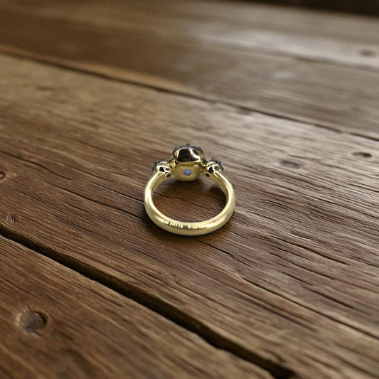 Georgian Inspired Three Stone Collet Setting in 18k Yellow Gold 4.24 cts of Diamonds