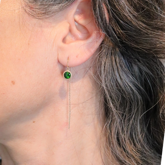 Chrome Diopside Drop Earrings | 14K Yellow Gold Milgrain Threaders | 1.65 ctw