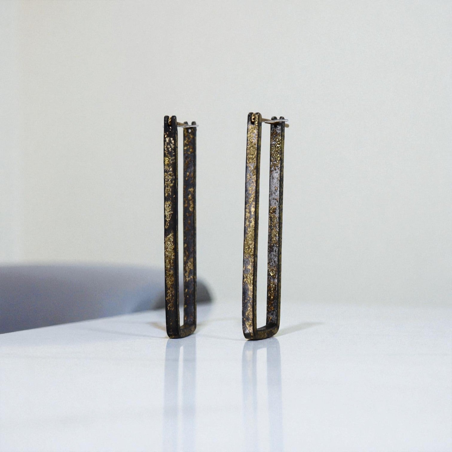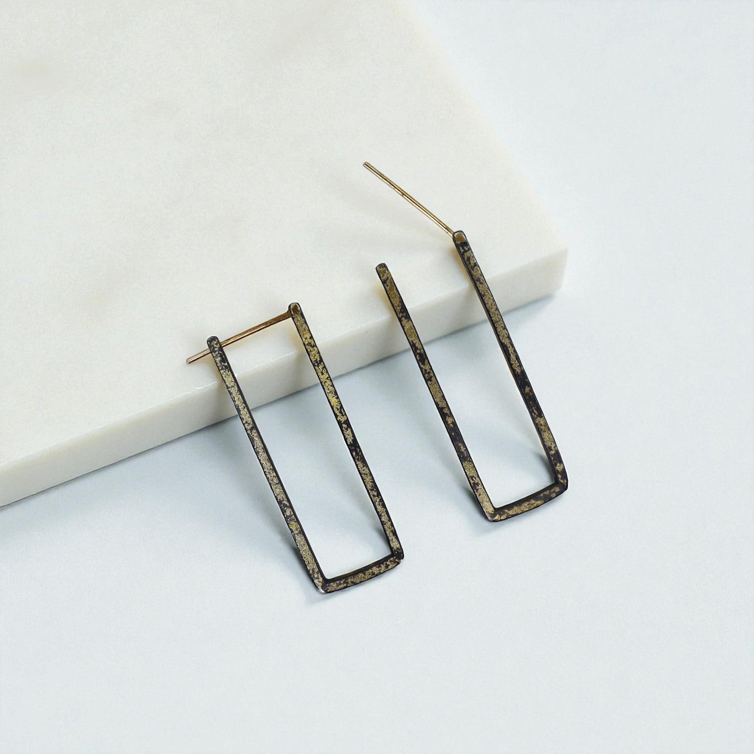 22k/18k Gold & Oxidized Silver Contemporary Hoops