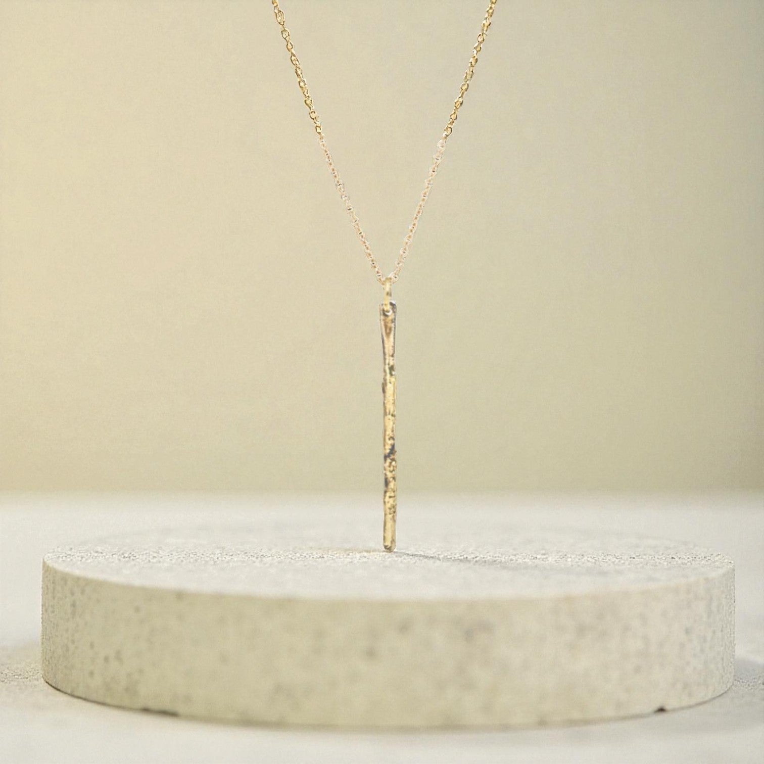 A go-to necklace for lunch in the city, a night on the town, or a day at the office. The slim 35mm pendant of recycled 18k gold and oxidized Argentium silver feels slightly uneven in the hand—a nod to the imperfections found in nature. The About Town Necklace is handcrafted and made with love.