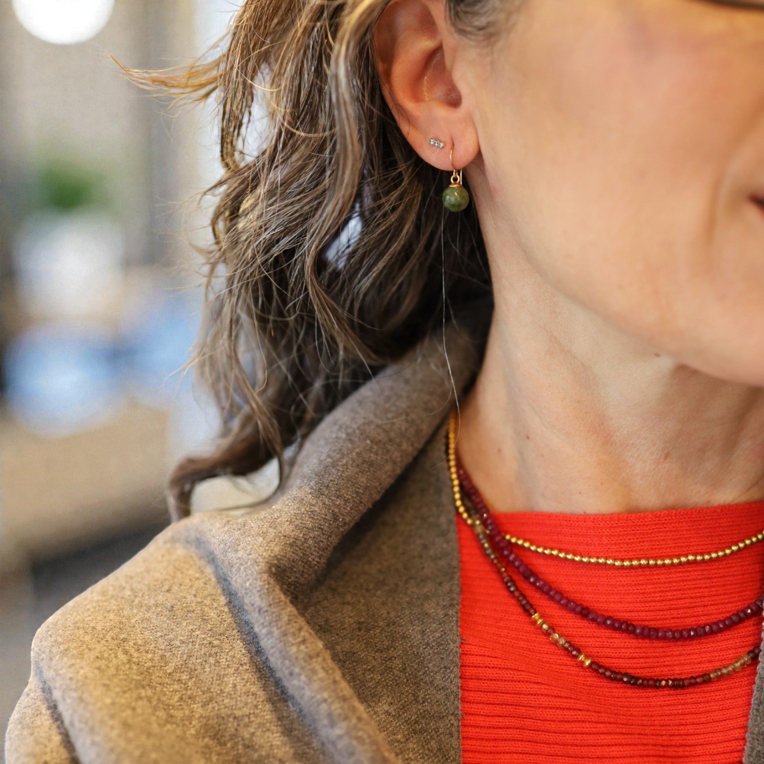 Nephrite jade has such a calm, grounded presence, and this converted pair really lets that shine. Originally mid-century clip-on earrings, these rich green jade beads have been thoughtfully updated into modern, easy-wear drops while preserving their vintage soul.