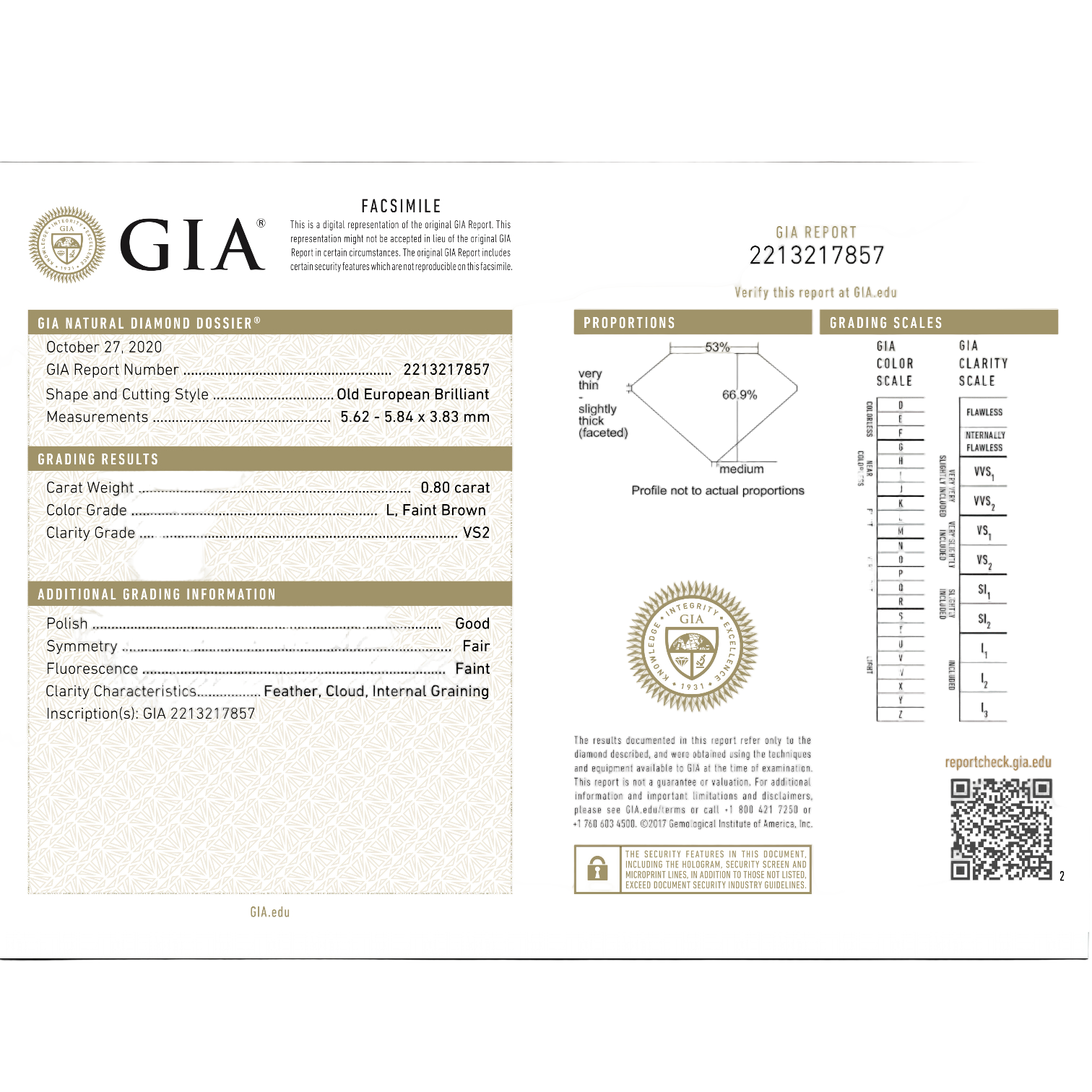 - Weight: 0.80 carats (exact, GIA Inscribed 2213217857)