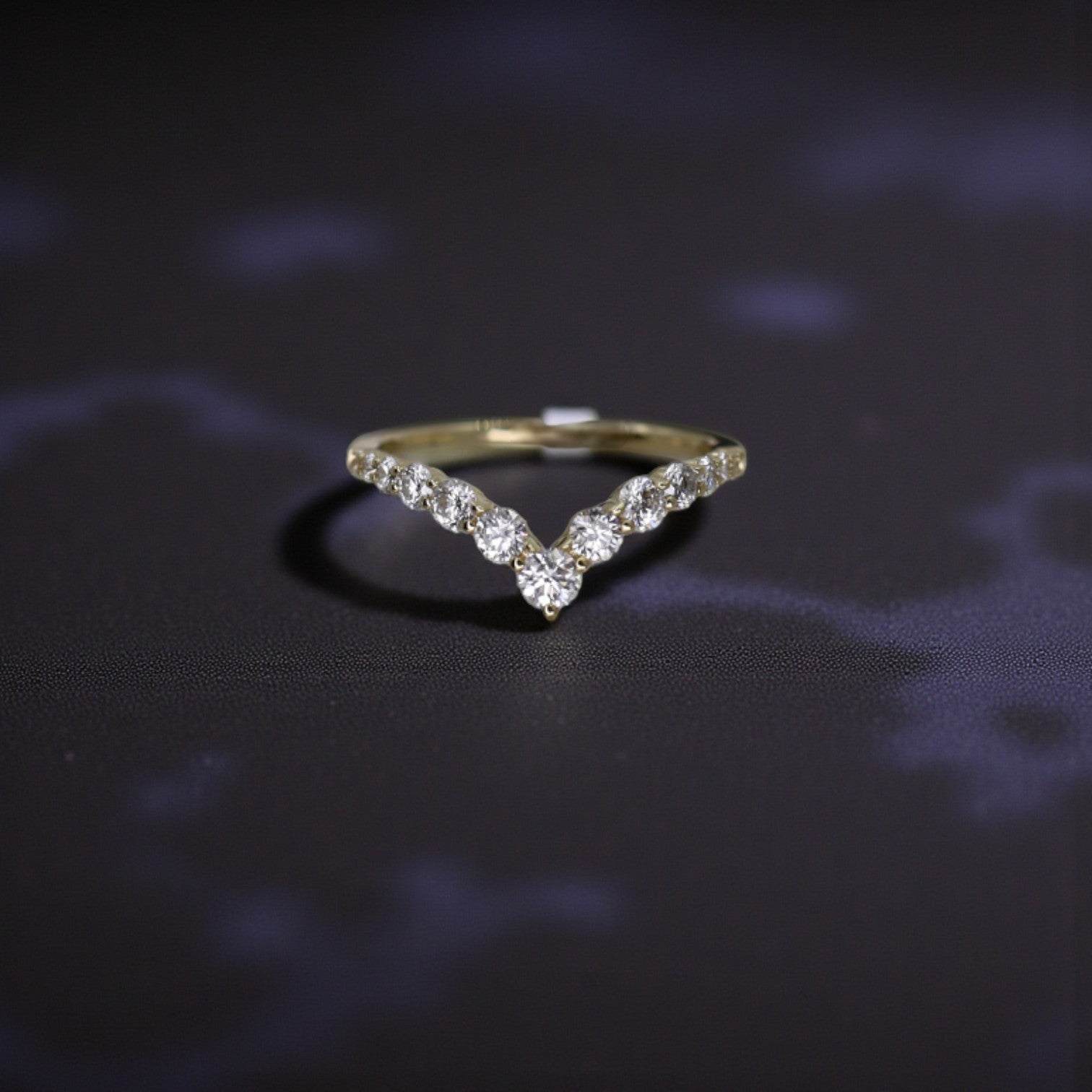 Diamond V Ring with 0.64 cts Graduated Diamonds in 14k Yellow Gold