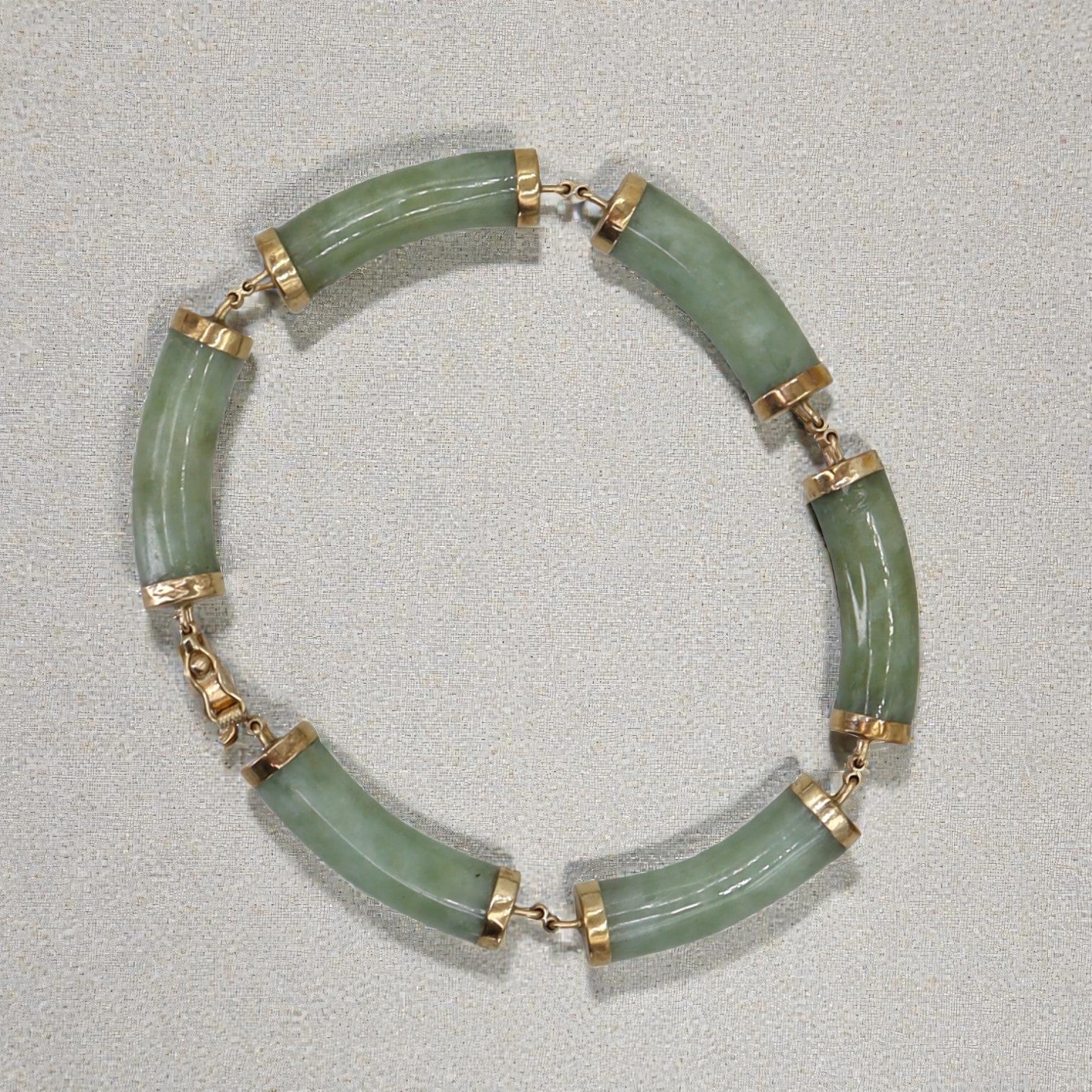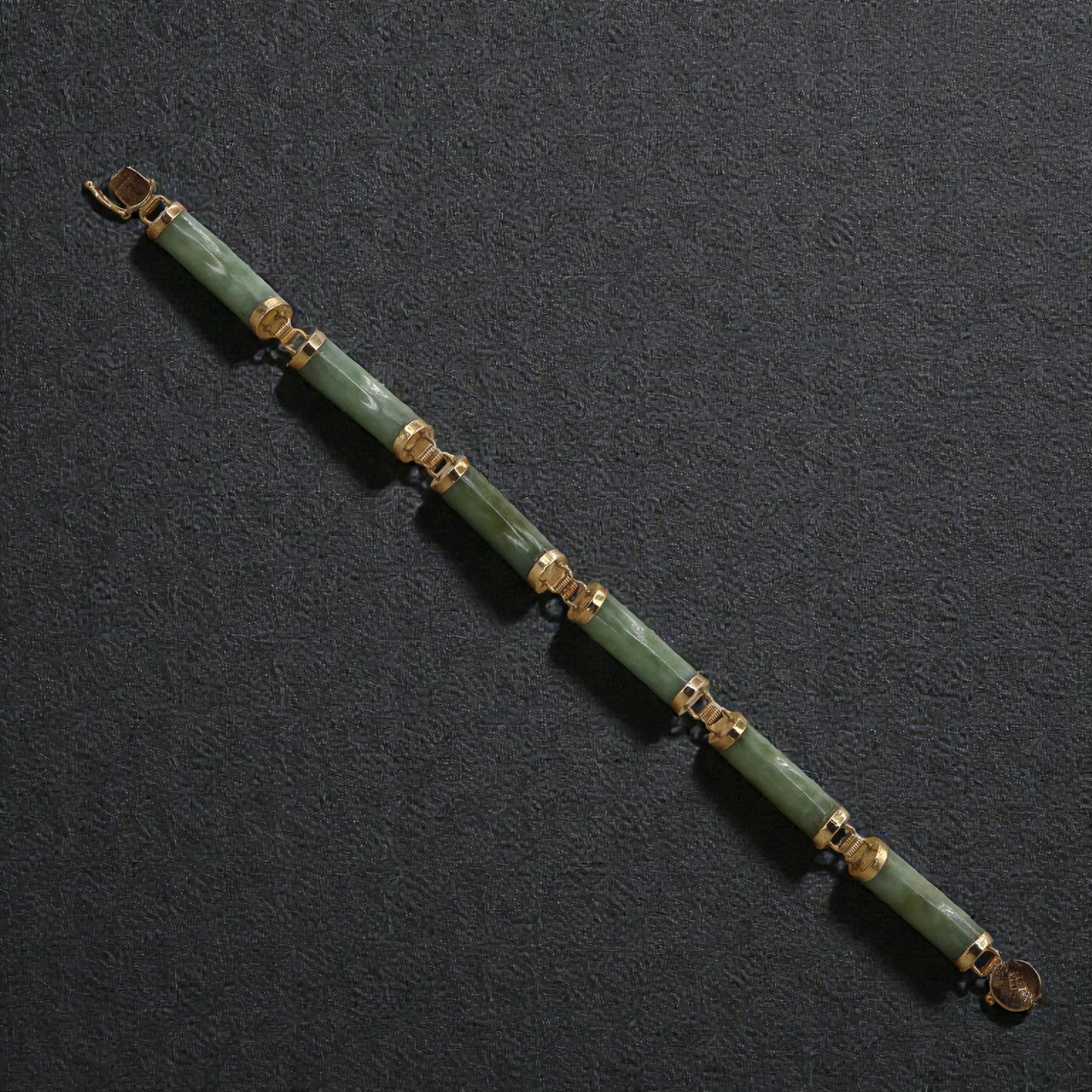 Jade Bracelet Mid Century 14k Gold 7.5 Inch