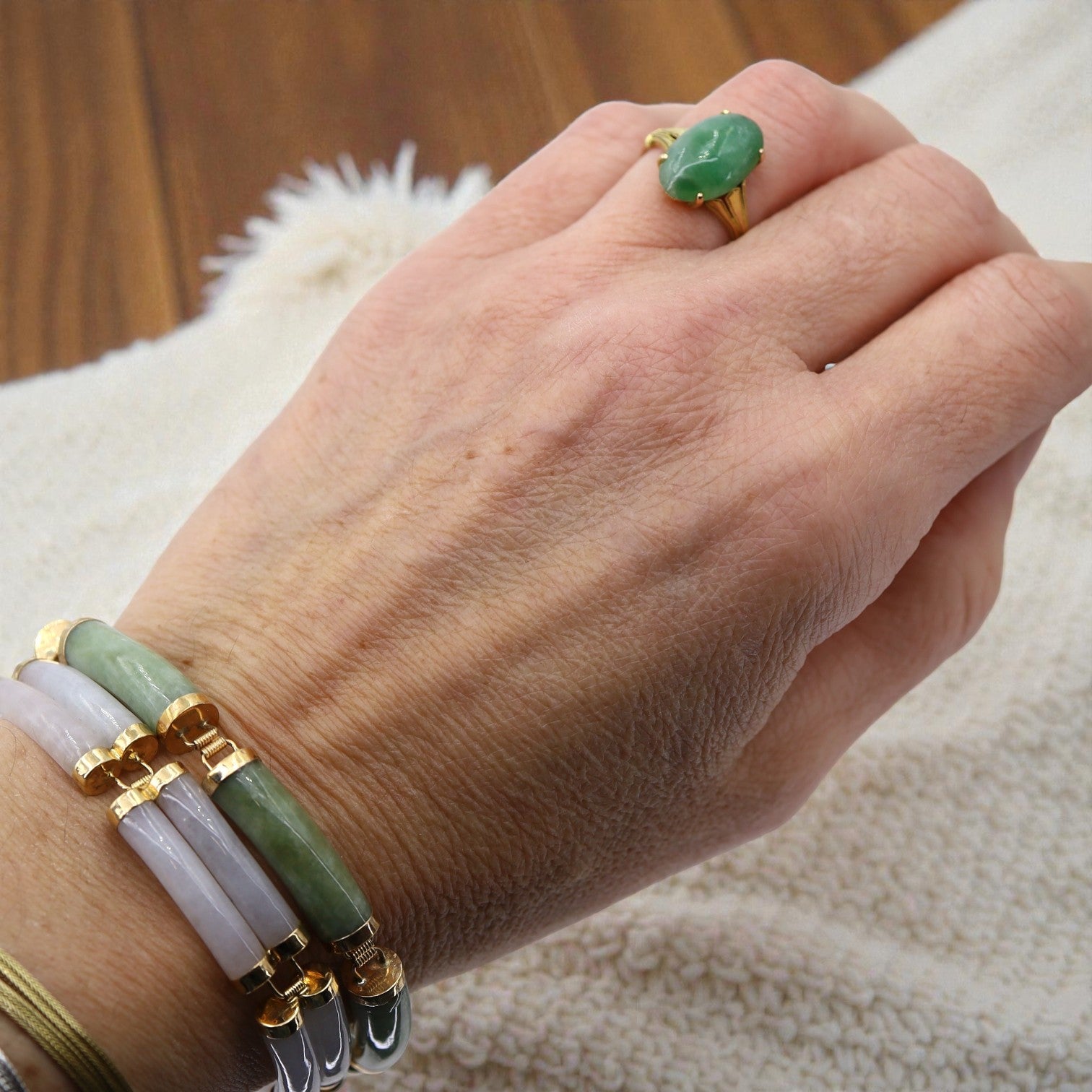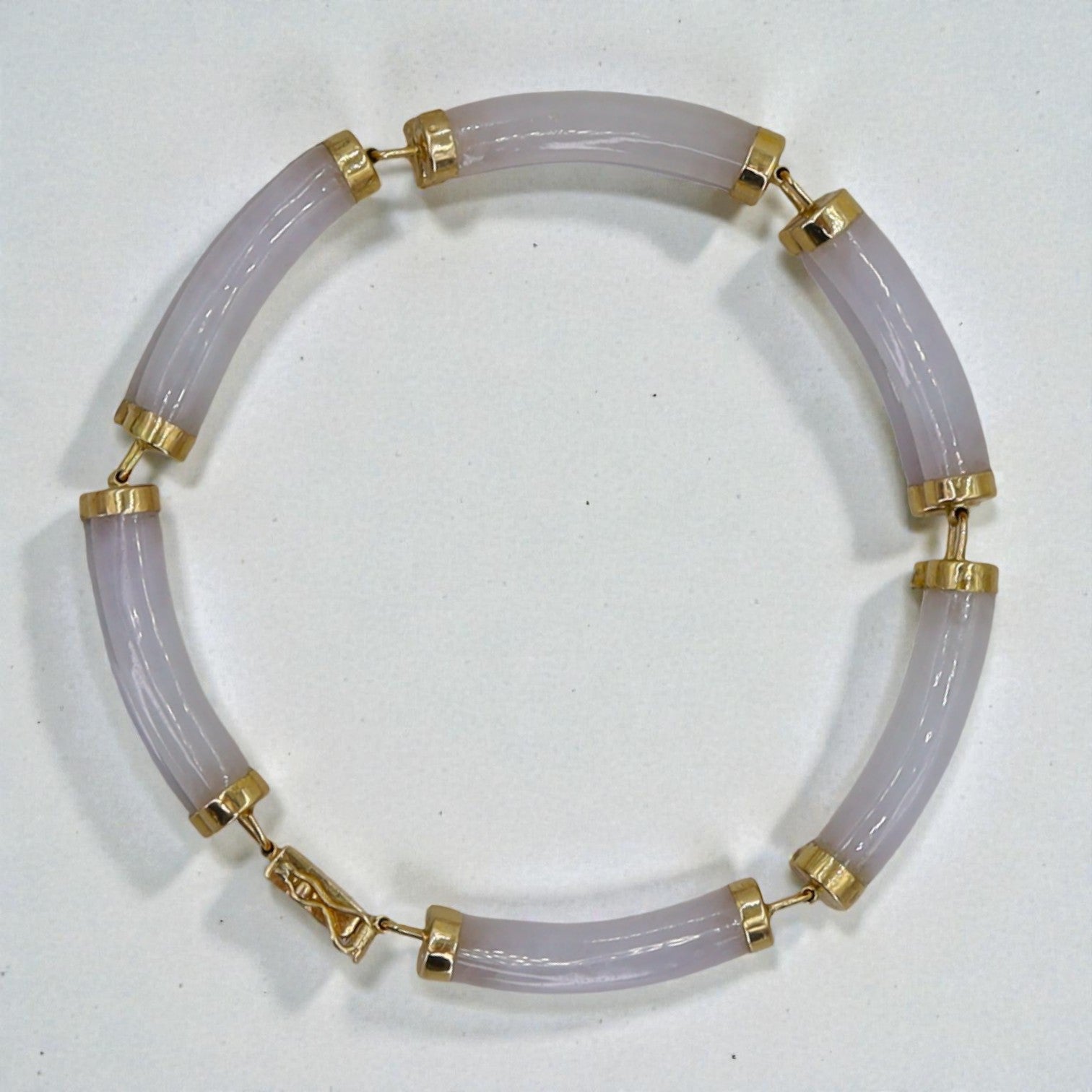 Lavender Jade Mid‑Century 14k Gold Double Row Bracelet 7.5 Inch