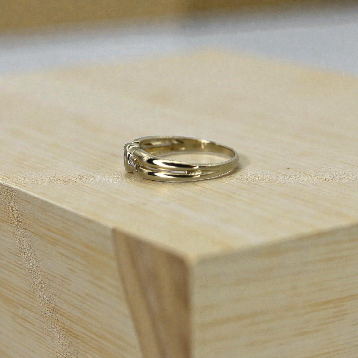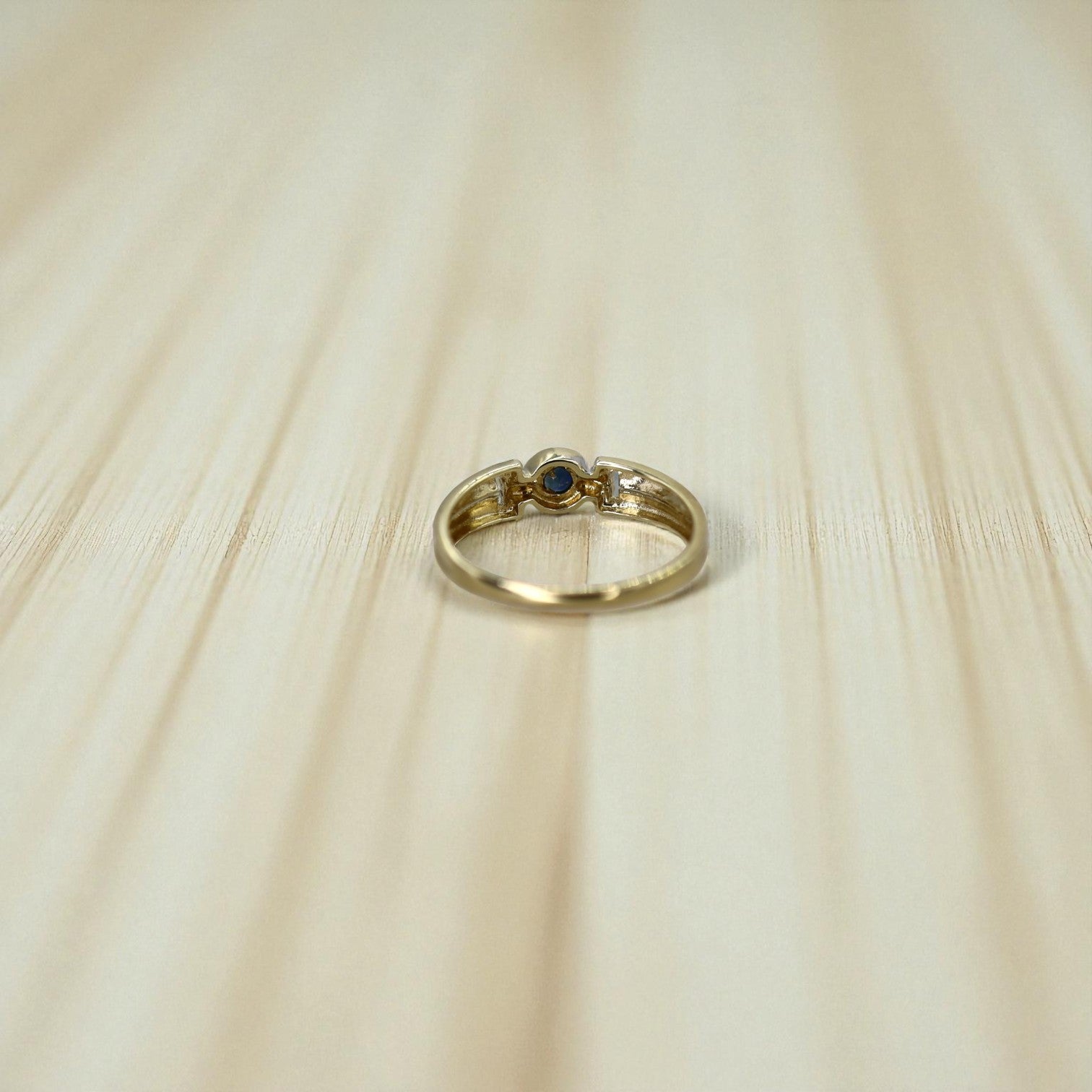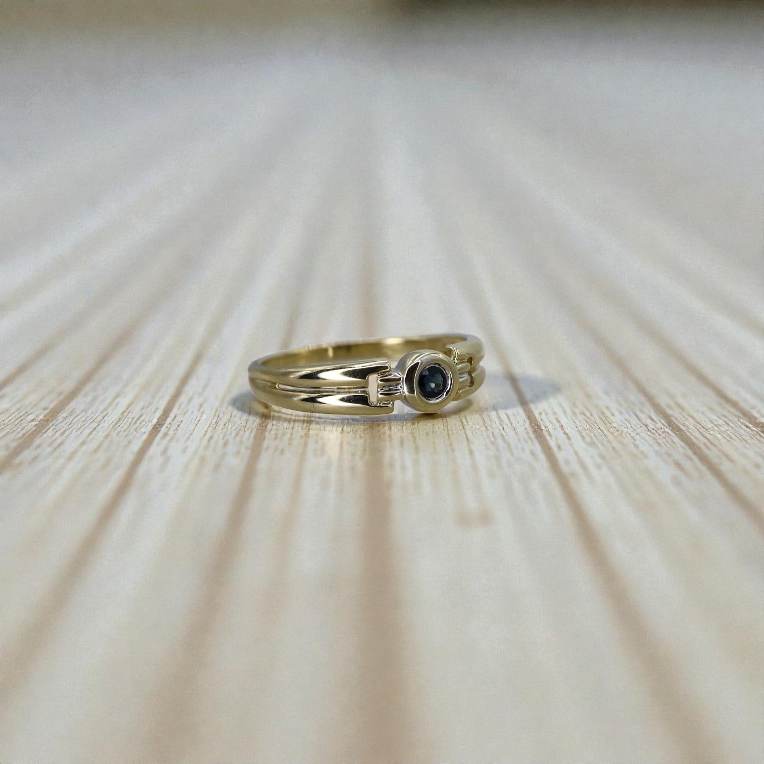 A vibrant 2.5 mm round faceted blue sapphire sits at the heart of this design—a nod to Eastern European goldsmith traditions, where 333 gold is a historical standard. Whether added to a vintage collection or worn solo, this band tells a story of timeless style and continental legacy.