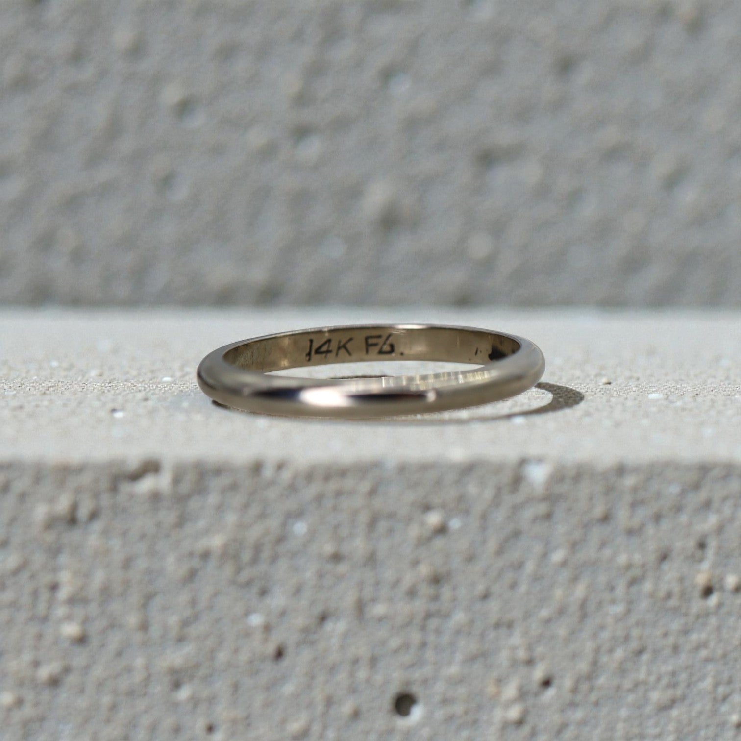 Crafted from 14k white gold, save on this vintage band features a low dome profile.
