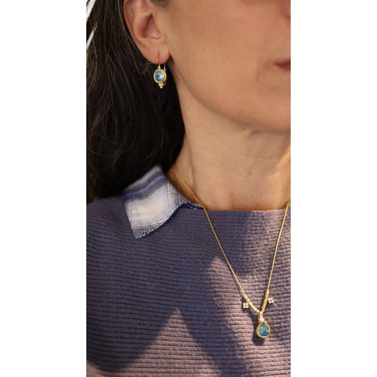 Blue Zircon & Pearl Circle Necklace 14k Gold – Vintage Brooch Conversion
