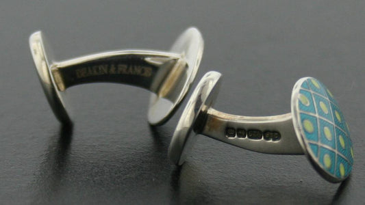 Deakin & Francis Turquoise and Yellow Enamel and Sterling Silver Cufflinks