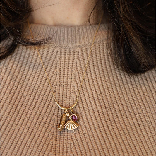 Antique Art Nouveau Four-Leaf Clover Crescent Moon Pendant — 14k Gold, Enamel & Pearls