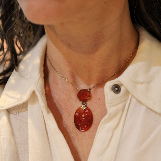 Art Nouveau Carved Carnelian Lavalier Necklace