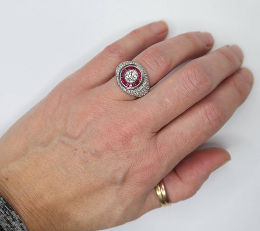Diamond and Ruby Cocktail Ring in Platinum
