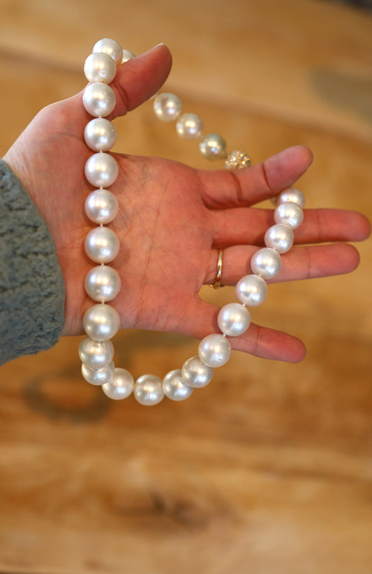 Extraordinary South Sea Pearl Necklace with Pavé Diamond Clasp