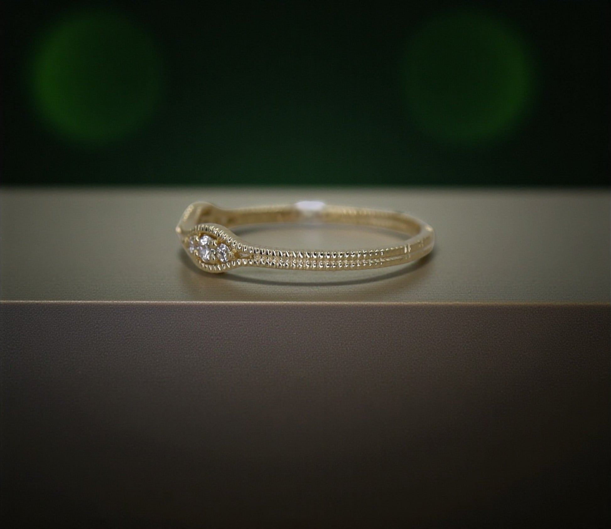A beautiful diamond band with a ribbed shape to go perfectly with a solitaire engagement ring, which features a milgrain edge all around. It is very versatile that works beautifully on a woman's hand as a wedding band stacker or right hand ring. Comes in 14k rose gold.