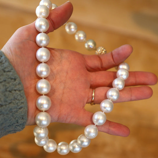 Extraordinary South Sea Pearl Necklace with Pavé Diamond Clasp