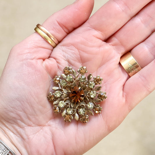 Vintage Gold-Tone Miriam Haskell-Style Costume Jewelry Brooch Pin
