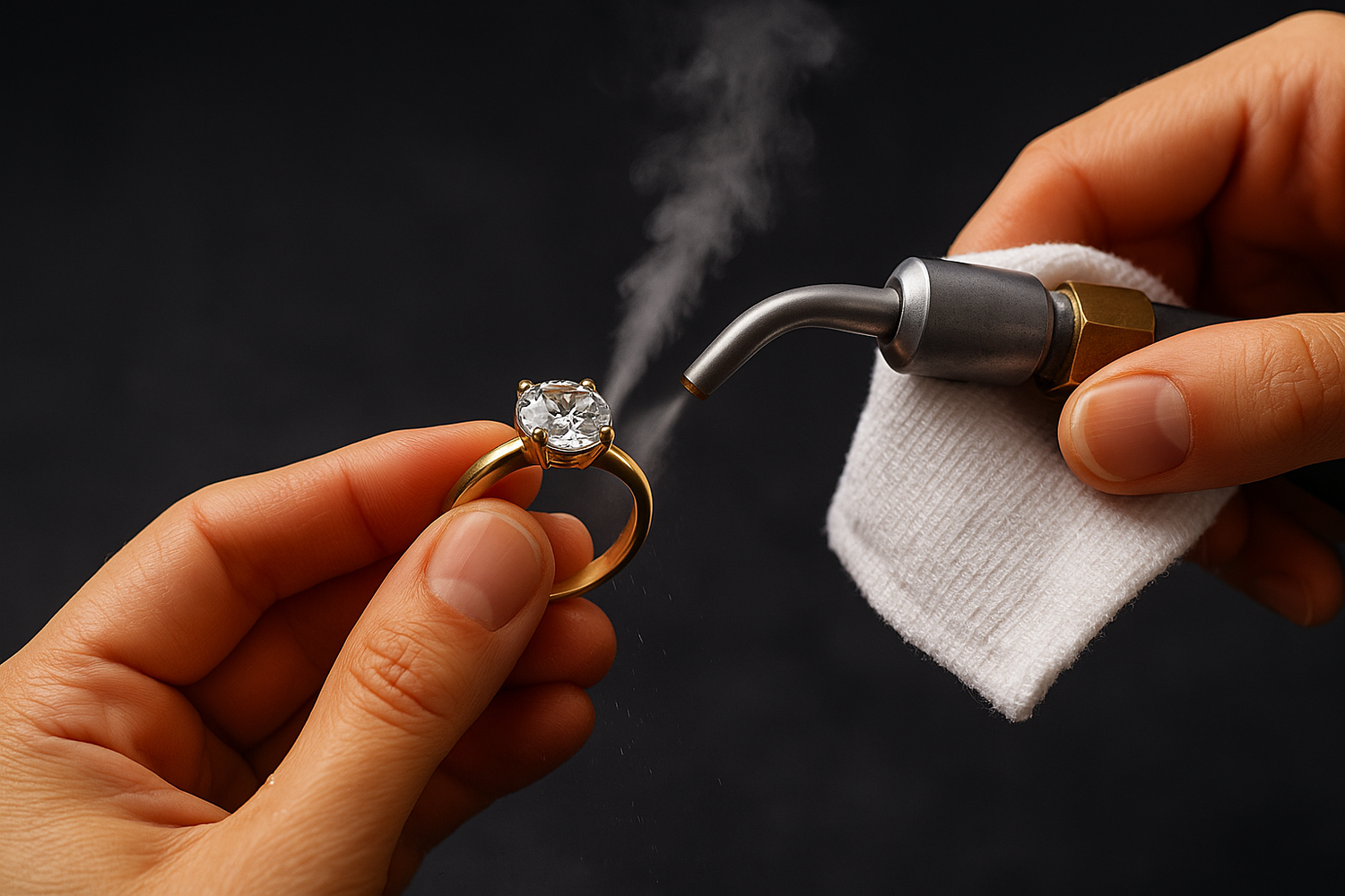 • Gently clean gold, platinum, and silver with a soft cloth; for deeper cleans, use mild soap and warm water, avoiding abrasive materials.