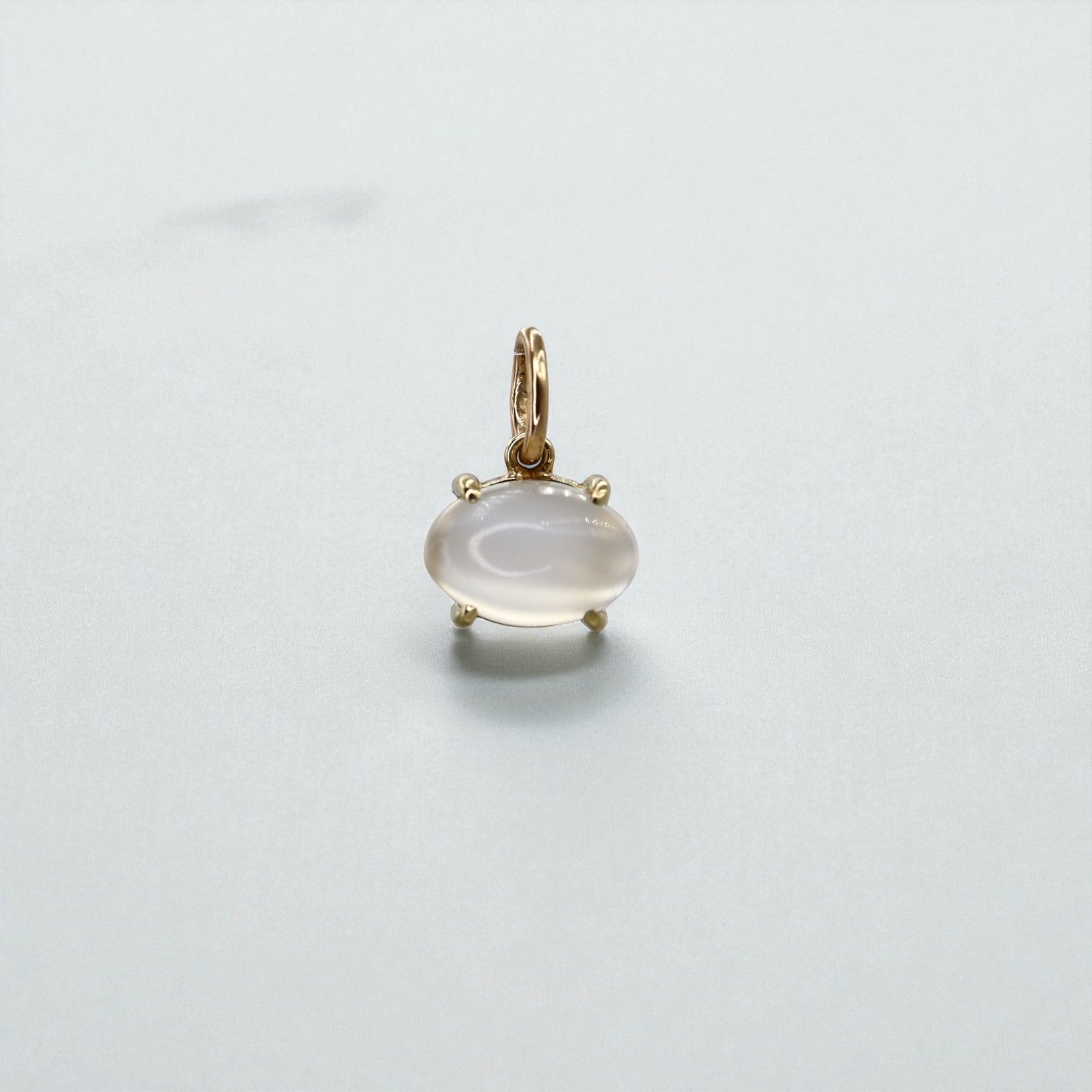 Bathed in soft, ethereal light, this 14k yellow gold moonstone pendant captures the quiet glow of the lunar sky. Set east-to-west in minimalist prongs, the cabochon-cut moonstone radiates with a natural adularescence—flashes of silver and blue light that shift beautifully with movement.