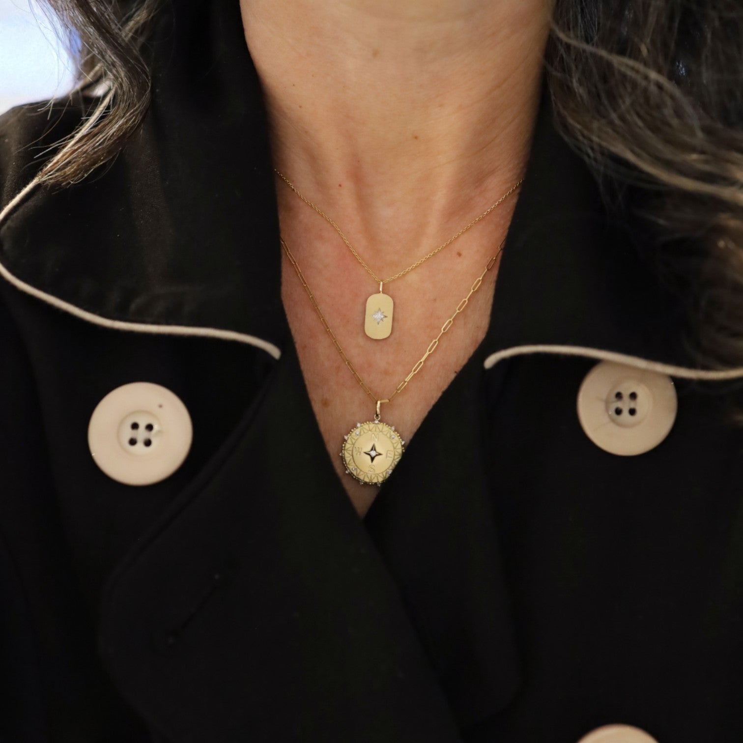 Diamond Star Dog Tag Necklace in 14k Yellow Gold