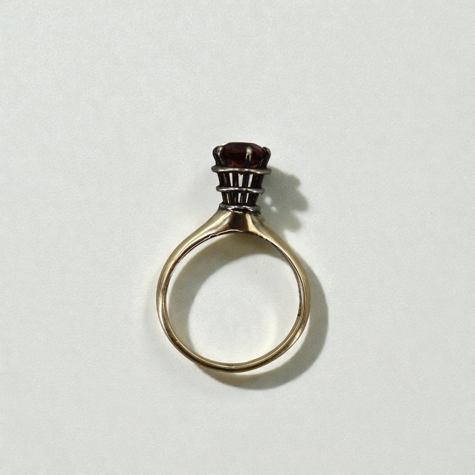 Garnet Spiral Solitaire Ring in 14k Yellow Gold & Silver / Space Age Ring / World's Fair Ring